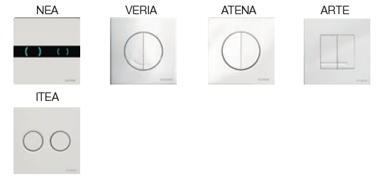 Do stelaża DUPLO 380 opracowano szereg efektownych płytek uruchamiających spłukiwanie , o niewielkich wymiarach ( 160 x 160 mm ) i z różnych materiałów : tworzywo sztuczne , stal nierdzewna , aluminium , stopy metali lekkich , szkło , które przekazują impuls do spłukiwania na 3 sposoby : mechaniczny ( płytki ARTE , VERIA , ATENA ), pneumatyczny ( płytki ITEA ) i elektroniczny ( płytki NEA ) .