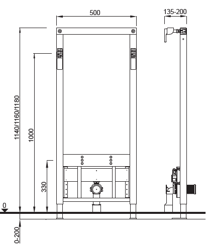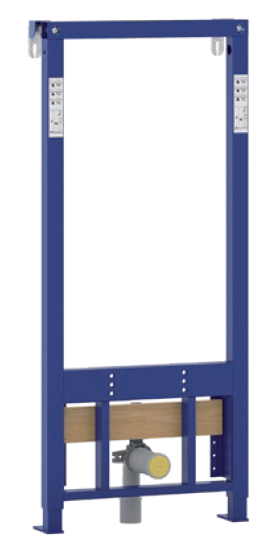 DUPLO BD to stelaż do bidetu wiszącego , który ma otwory montażowe o rozstawie 180 mm . Typowy stelaż na bazie ramy stalowej wykonanej z profili o przekroju kwadratowym ; zawiera wsporniki do ściany , komplet do mocowania ramy do ściany i podłogi oraz śruby ( pręty gwintowane ) do powieszenia bidetu , razem z nakrętkami i kołpakami ozdobnymi z białego tworzywa . Wymiary ramy : 500 ( szerokość ) x 1140 ( wysokość ) , wysokość regulowana ; odległość od ściany solidnej 135 do 200 mm .