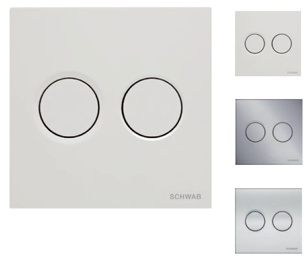 Przycisk o wymiarach 160 x 160 mm ma dwa przyciski do spłukiwania dwudzielnego .