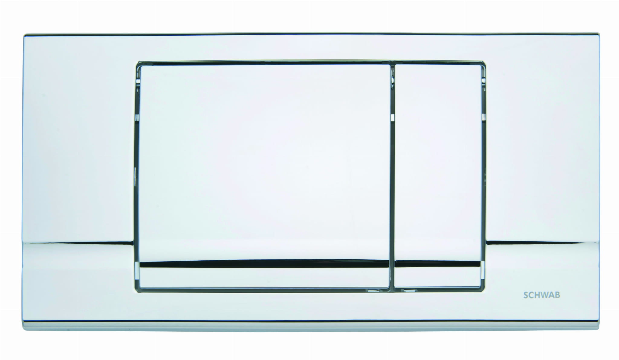 płytka RIVA DUO , chrom błyszczący , do zbiornika SCHWAB 182 UP , dwufunkcyjna : umożliwia spłukiwanie 3 lub 6 litrami wody . Wymiary 320 x 170 mm . Płytka z tworzywa ABS .