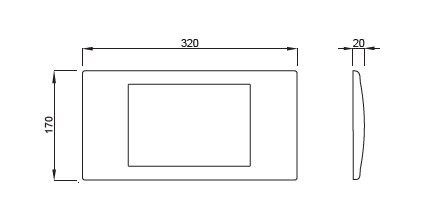 płytka RIVA , uruchomienie spłukiwania do zbiorników podtynkowych 182 UP , funkcjonalność : START-STOP ; umożliwia płukanie całą zawartością zbiornika lub , używając funkcji STOP ( dopóki w zbiorniku jest woda - przycisk jest wychylony poza płaszczyznę płytki ; przyciśnięcie wystającej części przycisku oznacza STOP ) , także dowolną mniejszą ilością wody . Wymiary : 320 x 170 mm .