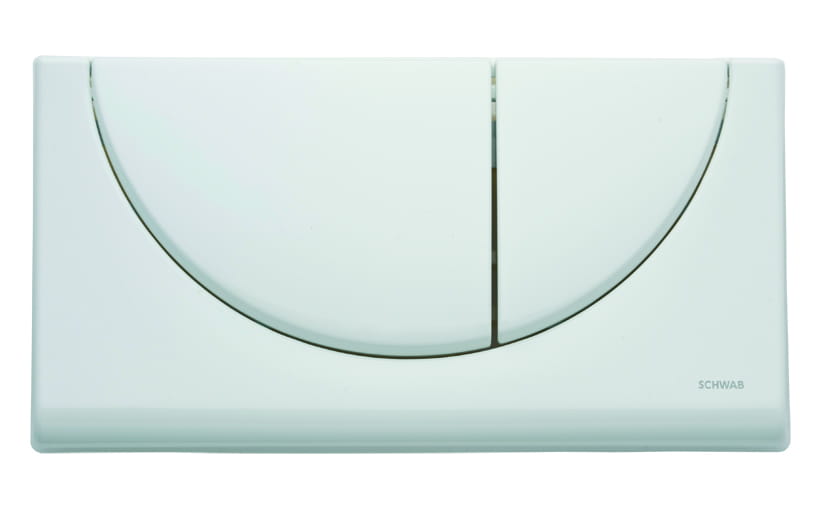 Płytka VIVA , biała , z tworzywa ASA , wymiary 340 x 180 mm ; dwufunkcyjna : 3 / 6 litrów , do zbiornika  podtynkowego  SCHWAB 182 UP .