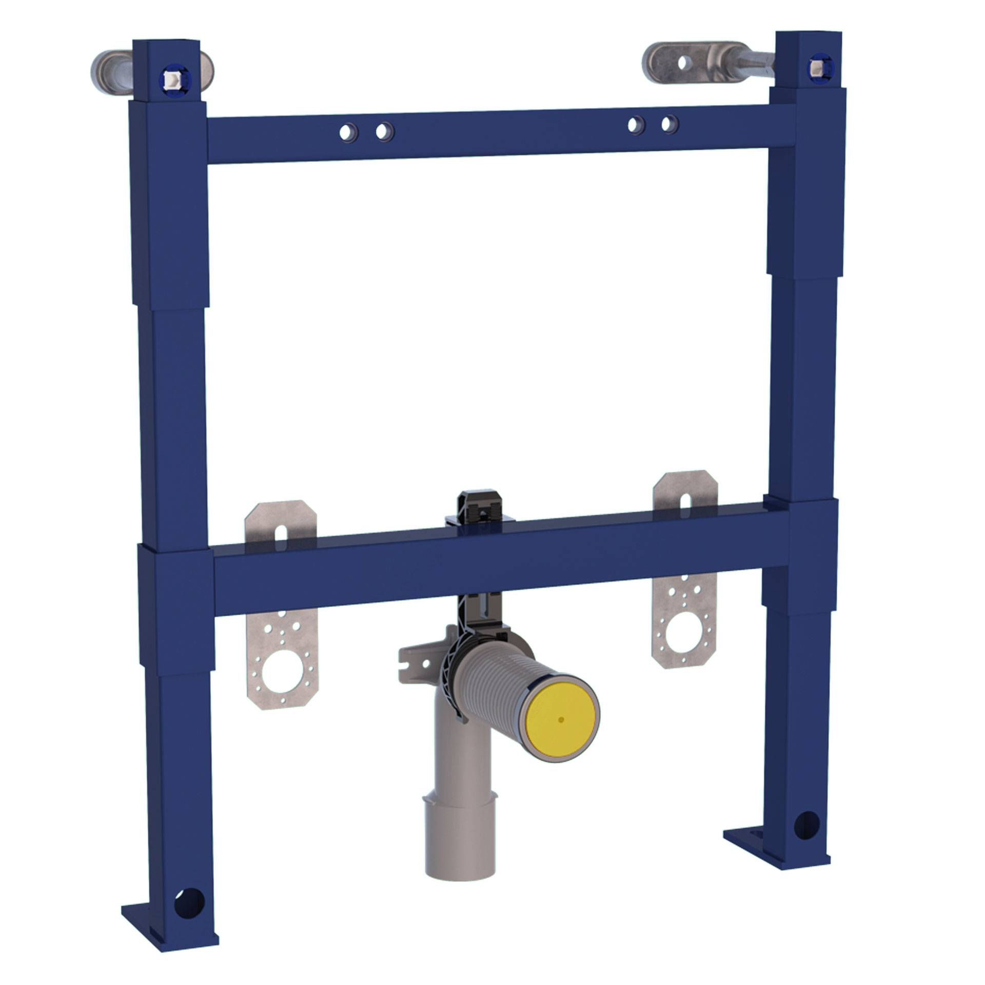 Stelaż wykonany z profili stalowych o przekroju kwadratowym , wyposażony w wysuwane nogi , wsporniki ścienne , odpływ D50/40 z redukcją do 32 , posiada mocowania do zaworów kątowych pod baterię bidetową . Lakierowany na kolor niebieski .