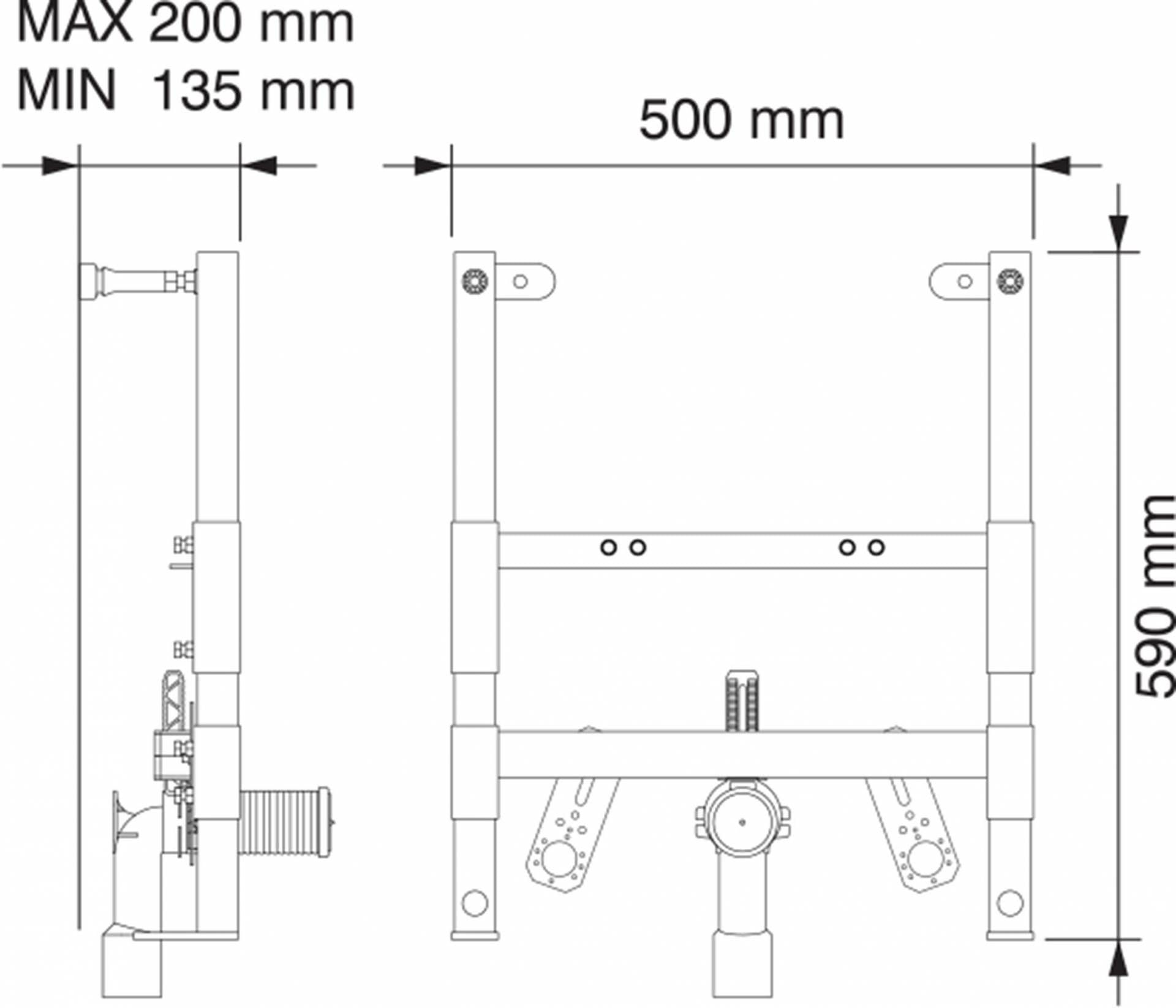 stelaż bidetowy niski , tylko 59 cm . Pozwala na instalację bidetu wiszącego na niskiej ściance działowej .